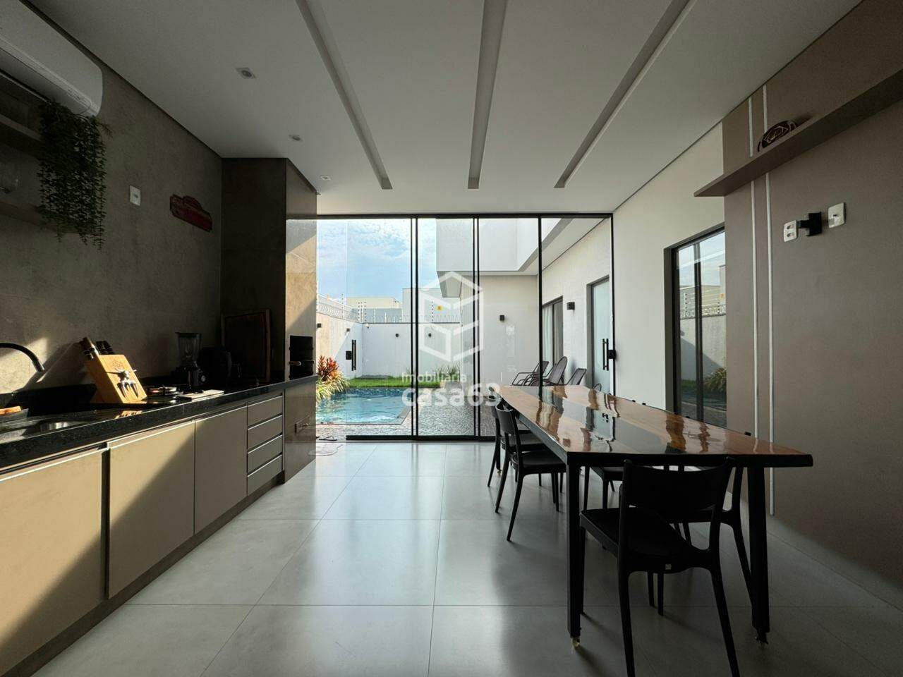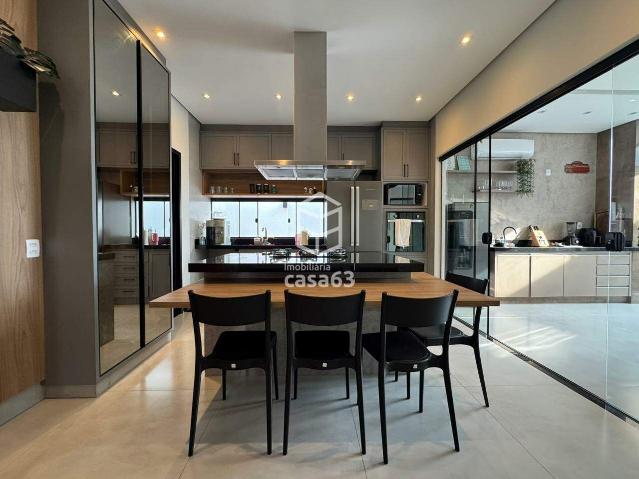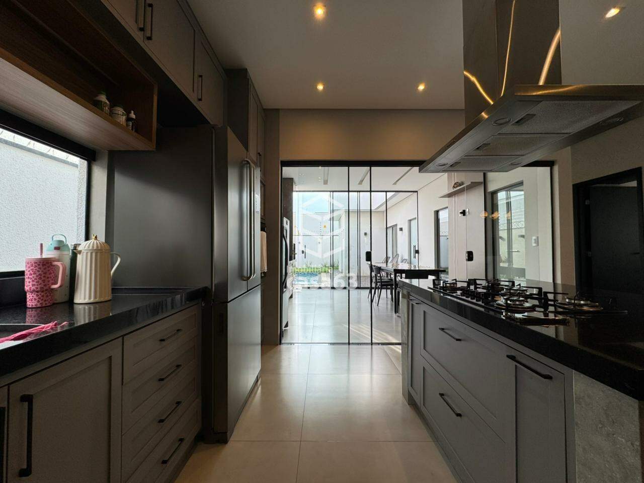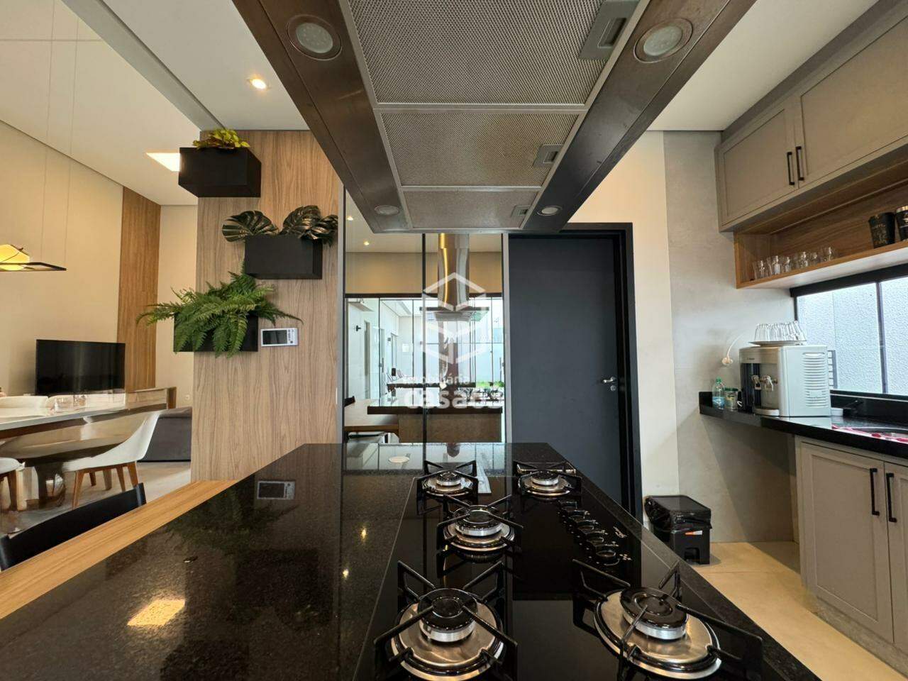 A casa com 198m² tem em seu interior 03 suíte sendo 01 máster com closet e home office, inteira no porcelanato classe A, sala de TV climatizada com pé direito alto e janelas panorâmicas em esquadria, cozinha ampla climatizada com uma iluminação belíssima, balcão em ilha com fogão por indução. 02 duas vagas de garagem coberta. Energia solar