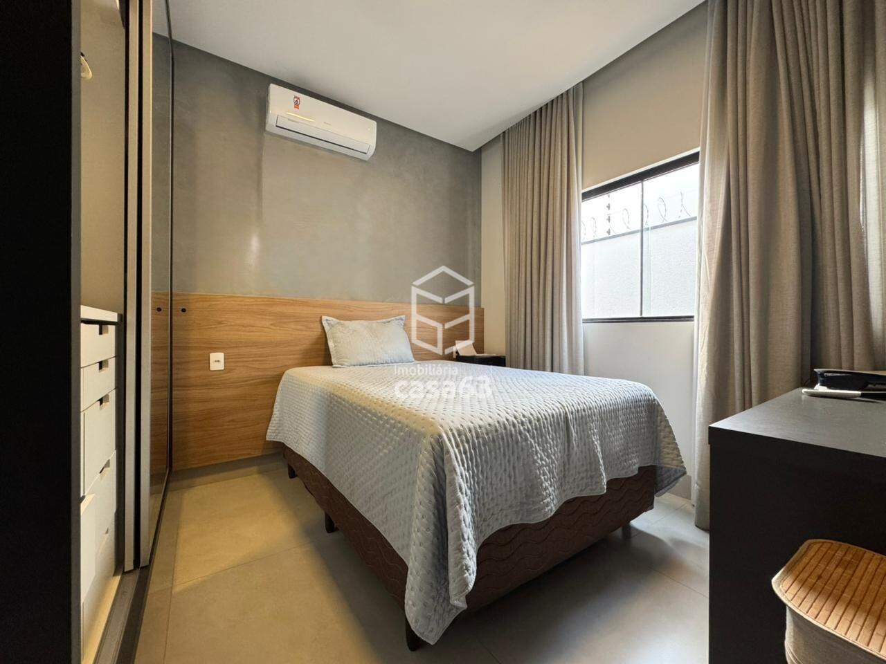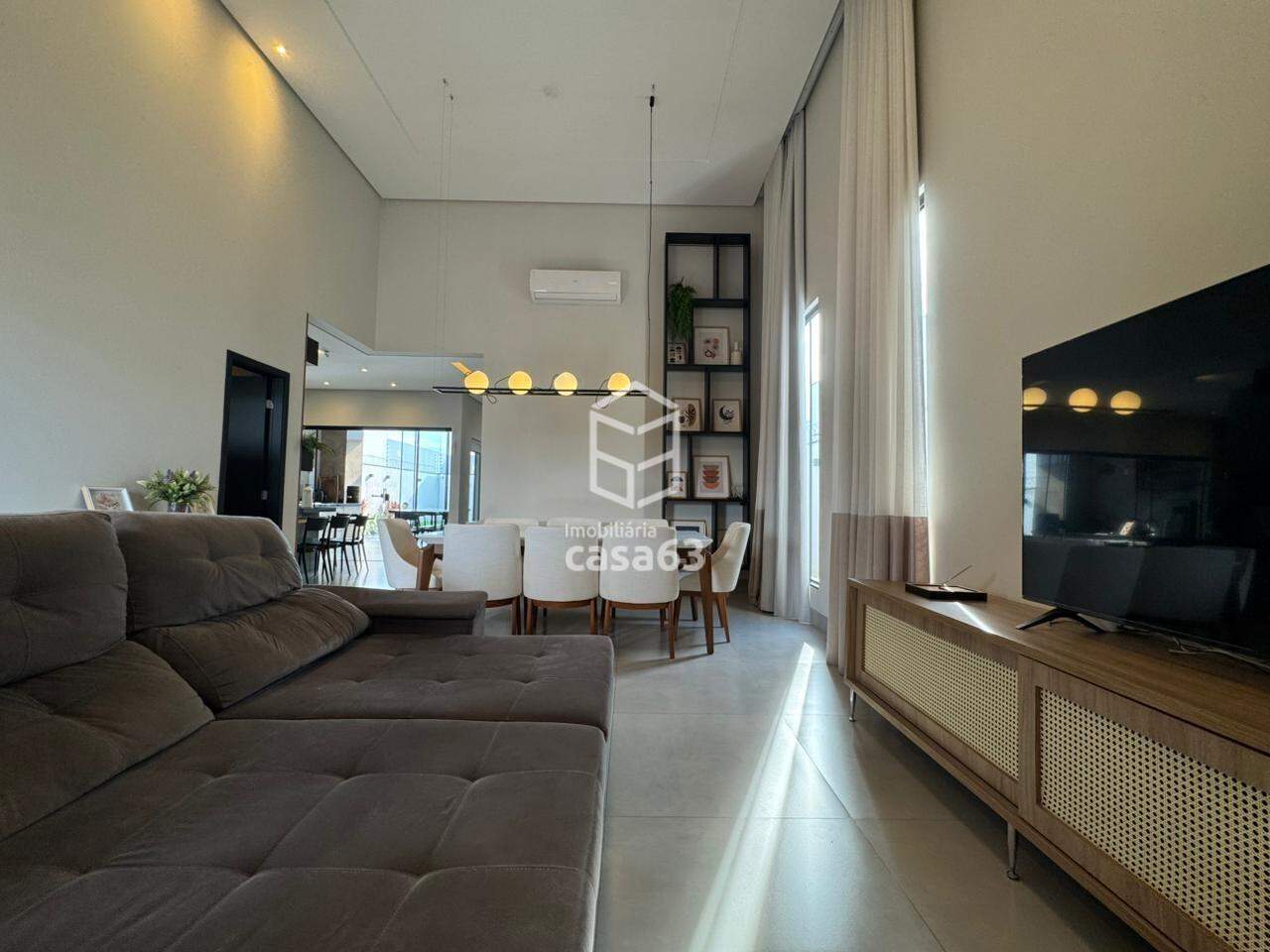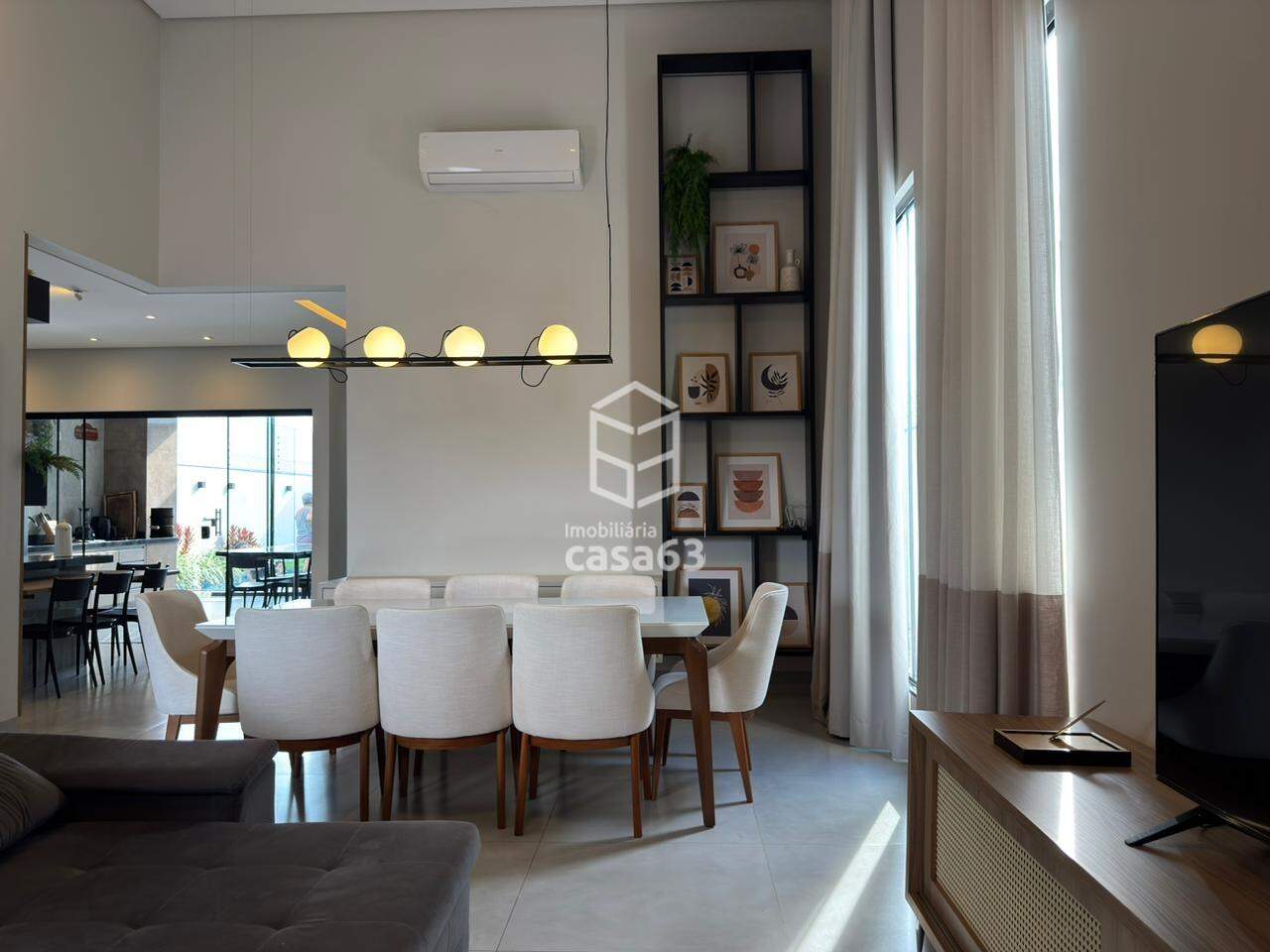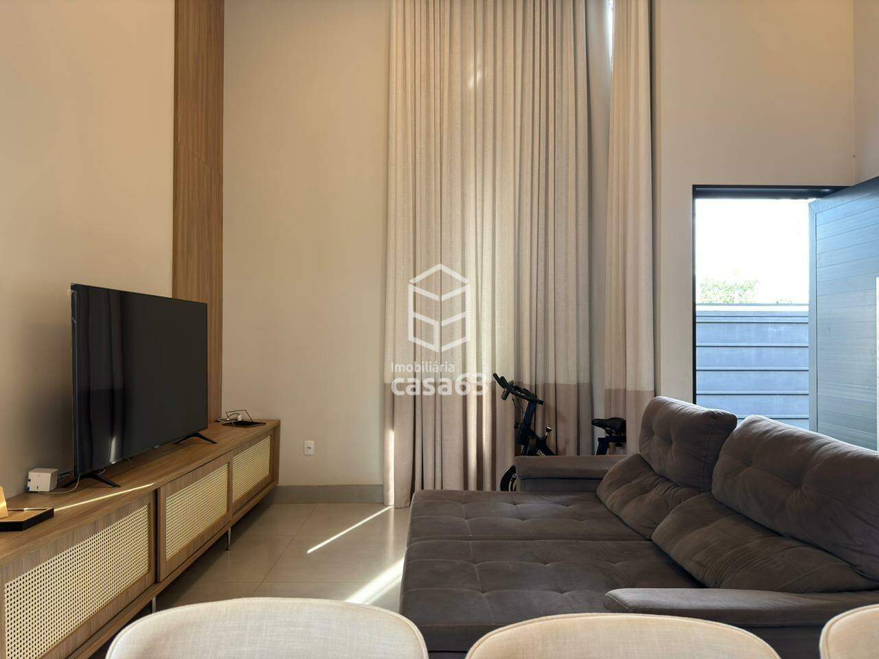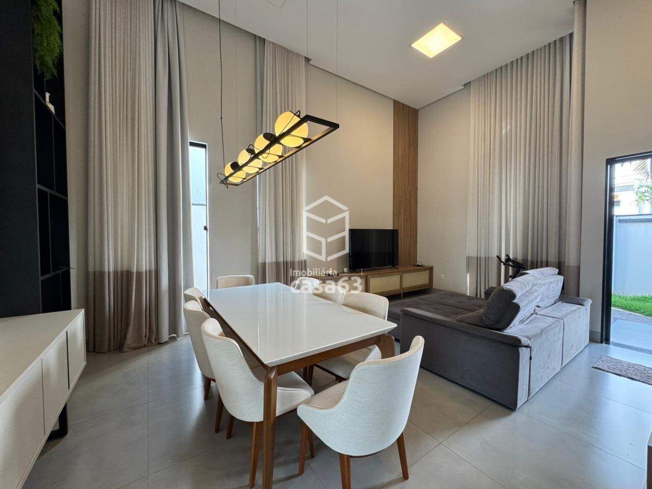 A casa com 198m² tem em seu interior 03 suíte sendo 01 máster com closet e home office, inteira no porcelanato classe A, sala de TV climatizada com pé direito alto e janelas panorâmicas em esquadria, cozinha ampla climatizada com uma iluminação belíssima, balcão em ilha com fogão por indução. 02 duas vagas de garagem coberta. Energia solar