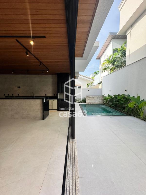 Piscina aquecida com cascata, hidromassagem e deck em porcelanato, além de acabamentos de alto padrão (porcelanatos, revestimentos e metais). O imóvel também possui esquadrias de alumínio, boiler para aquecimento e poço artesiano homologado.