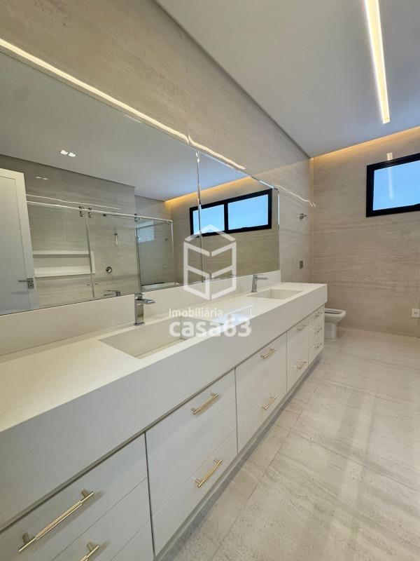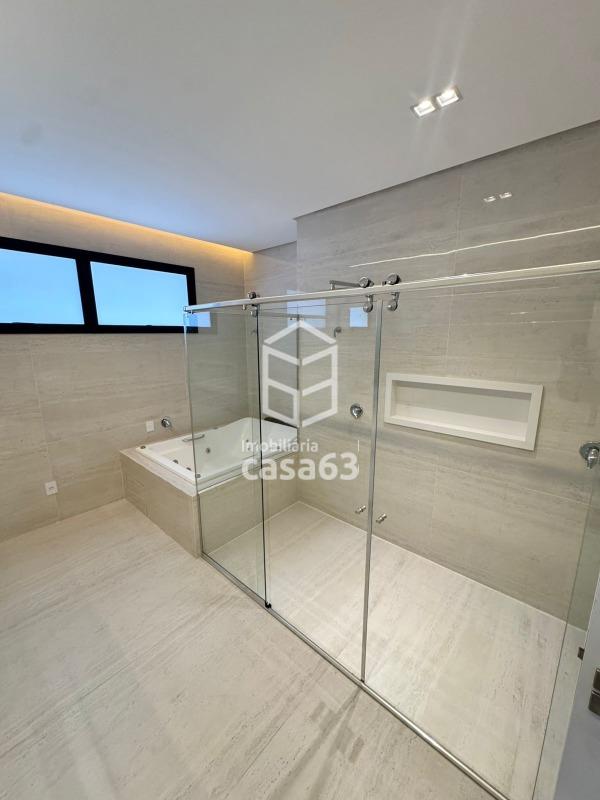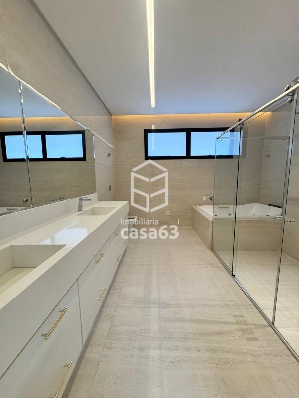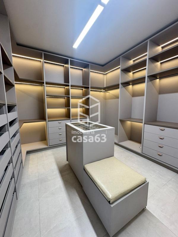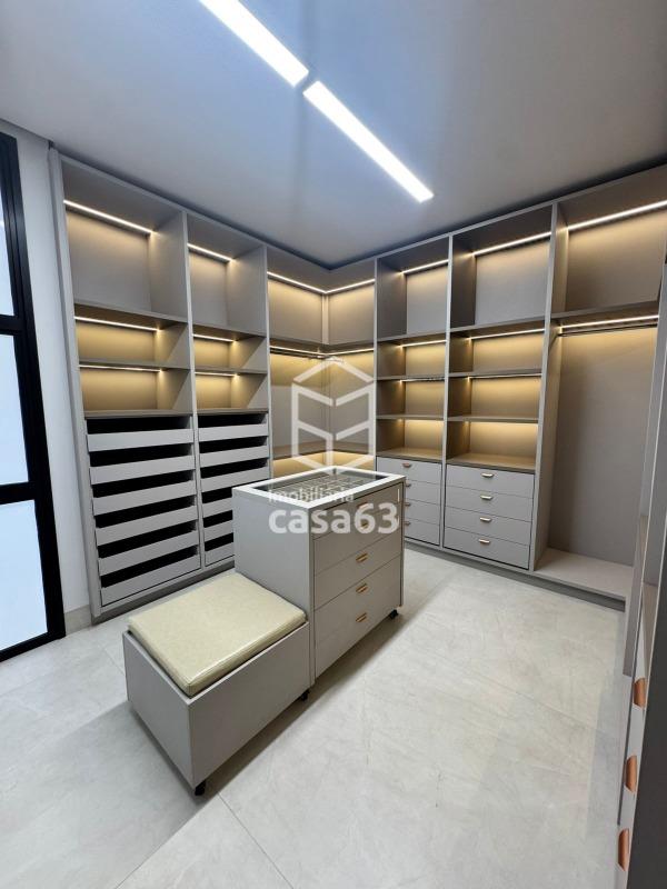 Imóvel de Alto Padrão com 330m², oferecendo 4 suítes plenas (todas com persianas elétricas), sendo a suíte master com closet e banheiro luxuoso, incluindo 2 chuveiros, hidromassagem e bancada em quartzo branco. As demais suítes possuem bancadas em quartzo branco com cuba esculpida.